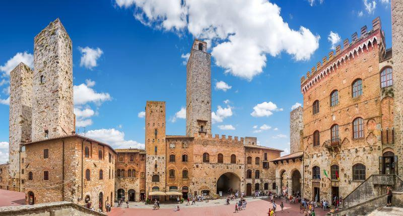 Miután elfogyasztattuk reggelinket, gyönyörű toszkán tájak felfedezésére indulunk. Az utunk legelőször az UNESCO Világörökséghez tartozó San Gimignano-ba, a „tornyok” világhírű városába vezet. A dombtetőre épült "középkori Manhattan" képe már távolról kiemelkedik a toszkán táj lankái közül jellegzetes tornyainak köszönhetően. A 72 középkori „felhőkarcolóból” , 14 maradt meg teljes pompájában. Belvárosi séta, majd vásárolhatunk a híres Chianti-ból és Vernaccia-ból, a helyi jellegzetes borokból vagy a szarvasgombával töltött vaddisznószalámiból is. Városnézésünk után ciprusokkal körülölelt domboldalak festői tájain átutazva érkezünk meg Toszkána gótikus gyöngyszeméhez. Siena lenyűgöző belvárosát az UNESCO a Világörökség részévé nyilvánította. Városnézés a jellegzetes középkori városkában, amely a középkori kereskedők és bankok "mekkája" volt egykor. Ismerkedés a legfontosabb látnivalókkal (Dóm, Palazzo Pubblico, Il Campo, Torre del Mangia, Fontana Gaia). A kagyló alakú, XII. századi, hatalmas Piazza del Campo elegáns palotákkal szegélyezett terét szűk, boltíves sikátorokon keresztül közelítjük meg. Megtekintjük a város büszkeségét a Dómot, melynek temérdek lenyűgöző freskója mellett külön ékességnek számít intarziás márványpadlója. A délutáni órákban folytatjuk utazásunkat Val d’Orcia vidékén, mely a jellegzetes toszkán dombokkal , ciprusokkal 2004. óta szerepel az UNESCO listáján. A szőlőföldek, az olajfák, és gesztenyefák között felbukkanó apró falvak, tornyok, ma is olyanok, mint a sienai mesterek egykori festményein. Mai utolsó megállónk Pienza. A festői kisváros 1996 óta része az UNESCO Világörökségnek. A kis település hírnevét többek között II. Pius pápának köszönheti, aki itt született, majd rezidenciát építtetett magának. Belvárosi sétánk után, a szálláshely elfoglalása Chianciano Terme városában.