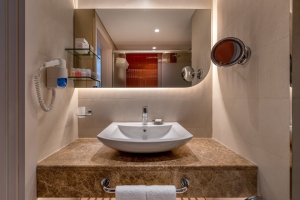 A standard kétágyas főépületi vagy annex épületi szobák felszereltsége: fürdőszoba, hajszárító, WC, légkondicionáló (központilag szabályozott), SAT/TV, telefon, minibar (üdítőitalok és víz ingyenesen), kávé/teakészlet, erkély vagy terasz; széf térítés ellenében (a pontos költségről kérjük érdeklődjön a recepción). Főépületi szobák felár ellenében foglalhatóak. Külön hálószobával rendelkező családi szobák felár ellenében, lekérésre állnak rendelkezésre.