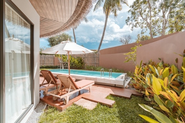Deluxe tengerparti szoba (2 fő, kb. 45-50 m?): egyéni vezérlésű légkondicionálás, üvegezett fürdőszoba zuhannyal, WC-vel és hajszárítóval, vezeték nélküli internet, televízió, telefon, kávé- és teakészlet, erkély asztallal és székekkel, valamint külső fürdőkád. Tengerre néző kilátás felár ellenében foglalható. Széf és minibár fogyasztás szerint elérhető. Deluxe szoba (2 fő, kb. 45-50 m?): felszereltsége megegyezik a tengerparti deluxe szobáéval, kiegészítve fürdőköntössel és papuccsal. A kilátás a környékre nyílik, tengerre néző opció felár ellenében kérhető. Családi szoba (2 felnőtt + 2 pótágy, kb. 60 m?): légkondicionálás, üvegezett fürdőszoba zuhannyal és külső fürdőkáddal, köntös és papucs, vezeték nélküli internet, televízió, telefon, kávé- és teakészlet, erkély asztallal és székekkel, kertre néző kilátás. Széf és minibár térítés ellenében áll rendelkezésre. Tengerparti lakosztály (2 fő, kb. 60 m?): légkondicionálás, üvegezett fürdőszoba zuhannyal és külső káddal, köntös és papucs, vezeték nélküli internet, kábeltelevízió, telefon, kávé- és teakészlet, valamint tengerre néző terasz. Széf és minibár felár ellenében használható. Tengerparti villa (2 fő + 1 pótágy, kb. 140-170 m?): egyéni légkondicionálás, üvegezett fürdőszoba káddal, zuhannyal, WC-vel és hajszárítóval, köntös és papucs, televízió, telefon, Nespresso kávéfőző, kávé- és teakészlet, tengerre néző terasz privát medencéhez való hozzáféréssel. Széf és minibár térítés ellenében biztosított. Kertre néző villa (2 fő + 1 pótágy, kb. 140-166 m?): felszereltsége megegyezik a tengerparti villáéval, azonban kertre néző kilátással és terasszal, amely szintén közvetlen hozzáférést biztosít a privát medencéhez. Széf és minibár térítés ellenében áll rendelkezésre.