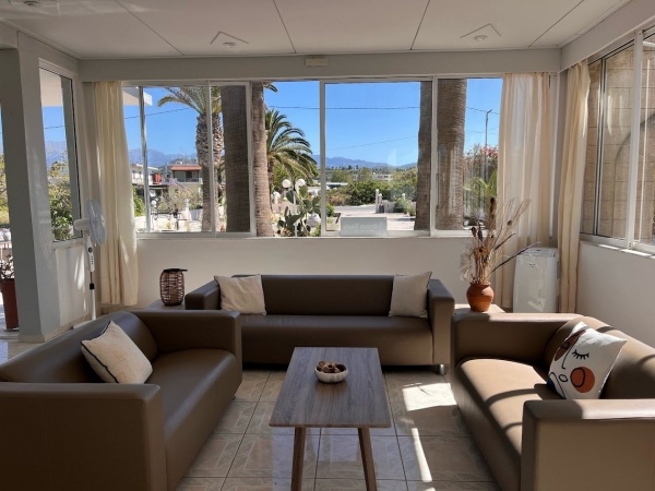 A kétszintes épületekből álló komplexum közvetlenül a tengerparton, egy kis kertben található, csendes környezetben, Gerani és Platanias között, kb. 1,5 km-re az üdülőhelyek központjától. Chania városa kb. 14 km-re, a repülőtér pedig kb. 30 km-re fekszik. A szálloda mellett minimarket is található.