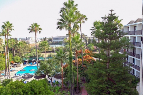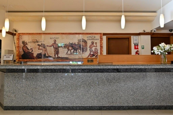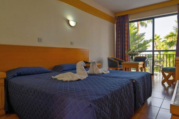 Fekvése: Paphos üdülőövezeti részén, a városközponttól kb.4 km-re épült, több épületből álló, népszerű száznegyvenhárom szobás szálloda. A tengerpart ötszáz méterre, a legközelebbi homokos helyenként aprókavicsos strand hétszáz méterre található a szállodától. Környékén éttermek, bárok, üzletek és szórakozási lehetőségek sokasága található. Buszmegálló a szállodával szemközt található.