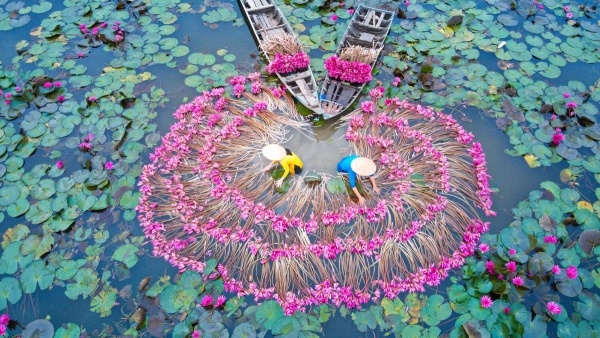 Látogatás a Ninh Binh tartományban található Hoa Lu-ban a Dinh és Le királyság templomai, Gia Hung falu, kerékpározás a folyóparton, majd hajókázás tradicionális sampanon a Van Long Természetvédelmi terület vizein, ahol a partokat rizsföldek és karszthegyek szegélyezik. Tam Coc ("a három lagúna") környékének felfedezése után transzfer a szállodában.