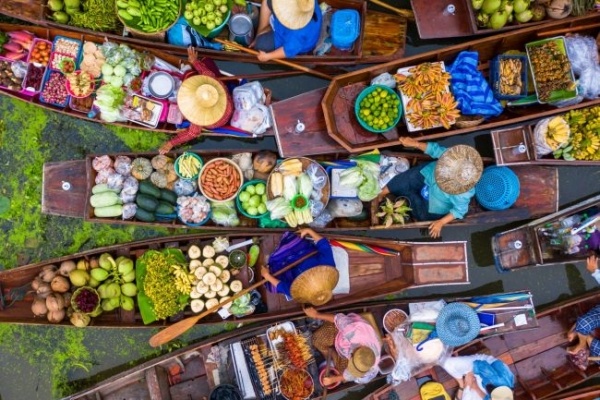Fakultatív látogatás a Damnoen Saduak úszó piacon: 50 USD/fő, helyszínen fizetendő. Kora reggel indulunk a piacra, hiszen olyankor a legélénkebb: ezen a különleges helyen a portékák a csónakokban kapnak helyet, és az egymás mellett elhaladó hajókon történik a rengeteg különböző gyümölcs, zöldség, helyben sütött finomság, szövet, Buddha-szobor stb. adásvétele. Ha szemet vetünk valamire, alkudjunk rá, ahogy a helyiek! A piacon tett látogatás után visszatérünk Bangkokba és az Arany-hegy tetején helyet foglaló Wat Saket templomot nézzük meg, innen pazar a kilátás a thai metropoliszra.