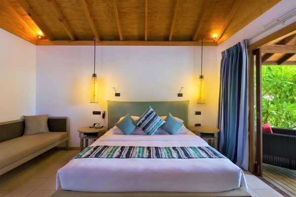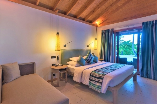SZOBÁK: szomszédos tengerparti villa: 2 fő (2 pótágy lehetőség gyerekeknek), kb. 55 m2, egyedi vezérlésű légkondicionálás, félig nyitott fürdőszoba (zuhanyzó, wc; hajszárító), vezeték nélküli internet, műholdas televízió, telefon, kávé/tea készlet; felár ellenében: széf, minibár (fogyasztás szerint fizetendő); terasz közvetlen lejárattal a strandra (asztal és székek); jakuzzis vízi villa:csak felnőtteknek (18+), 2 fő (1 pótágy lehetőség), kb. 85 m2, felszereltség mint a szomszédos tengerparti villában; terasz (asztal, székek és napozóágyak), jakuzzi, közvetlen lejárat a vízhez; jakuzzis vízi villa felár ellenében.