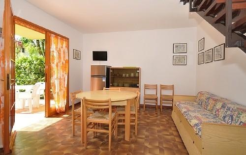 C típus -kétlégterű apartman, földszinten konyha, nappali diványággyal, emeleten egy hálószoba franciaággyal, egy hálószoba egy emeletes ággyal és egy szingliággyal, fürdőszoba zuhanyzóval, terasz, parkoló.