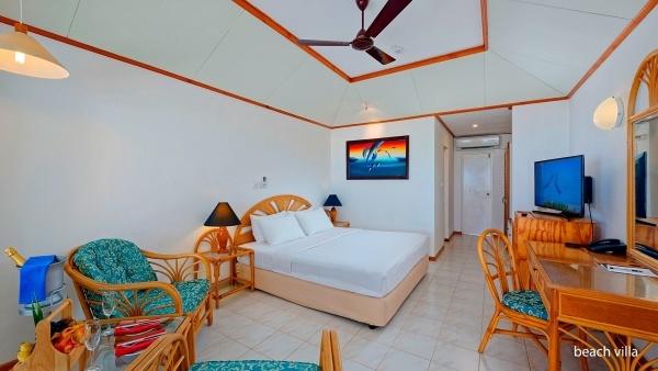 A szálloda különböző típusú villákat kínál. A tengerparti villa kb. 35 m? alapterületű, két fő számára ideális, és egy pótágyat biztosít felnőttnek vagy két gyermeknek. A villa gondozott, egyénileg szabályozható légkondicionálással rendelkezik. A fürdőszobában zuhanyzó, WC és hajszárító található. A vendégek számára műholdas televízió, telefon, minibár (naponta vízzel feltöltve), széf, kávé- és teafőző készlet, valamint ingyenes kiságy áll rendelkezésre 2 év alatti gyermekek számára, amelyet előzetesen kell igényelni. A terasz asztallal és székekkel van felszerelve, és kertre néző kilátást nyújt.