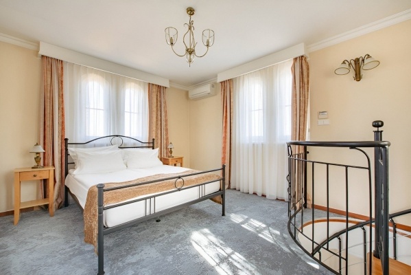 a hálószoba és a nappali optikailag elkülönített, ajtóval elválasztva vagy külön emeleteken
