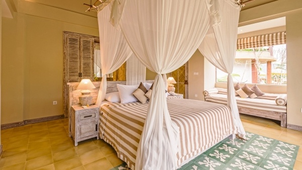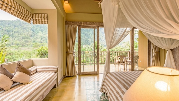 A lanai szobák tágas, körülbelül 58 m?-es élettérrel várják a vendégeket, két fő részére, egy pótágy elhelyezésének lehetőségével. A szobák egyénileg szabályozható légkondicionálóval rendelkeznek, fürdőszobájukban kád, WC, hajszárító, kozmetikai csomag, valamint köntös és papucs biztosítja a kényelmet. A nagy, baldachinos ágy szúnyoghálóval felszerelt, míg a további kényelmi szolgáltatások közé tartozik a vezeték nélküli internet, a telefon, a széf, a kávé- és teafőző készlet, naponta négy palack víz, valamint egy frissen feltöltött szezonális gyümölcskosár. A minibár fogyasztás szerint térítés ellenében használható. A hangulatos terasz asztallal és székekkel a rizsföldekre vagy az esőerdőre nyíló kilátással teszi teljessé a pihenést. A suite di ume szobák körülbelül 61 m?-esek, két fő részére - pótágy lehetőségével -, és felszereltségük megegyezik a lanai szobákéval. Erkélyük asztallal és székekkel a dombokra vagy a folyóra néz, így különösen idilli környezetet biztosítanak a kikapcsolódáshoz. A medencés villák még tágasabb, körülbelül 118 m?-es teret kínálnak két fő részére, pótágy lehetőségével, felszereltségük pedig a lanai szobákéhoz hasonló. A villa különlegessége a privát medence, amely a dombokra nyíló panorámával együtt exkluzív pihenést biztosít.