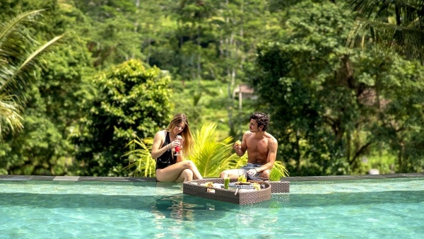A lanai szobák tágas, körülbelül 58 m?-es élettérrel várják a vendégeket, két fő részére, egy pótágy elhelyezésének lehetőségével. A szobák egyénileg szabályozható légkondicionálóval rendelkeznek, fürdőszobájukban kád, WC, hajszárító, kozmetikai csomag, valamint köntös és papucs biztosítja a kényelmet. A nagy, baldachinos ágy szúnyoghálóval felszerelt, míg a további kényelmi szolgáltatások közé tartozik a vezeték nélküli internet, a telefon, a széf, a kávé- és teafőző készlet, naponta négy palack víz, valamint egy frissen feltöltött szezonális gyümölcskosár. A minibár fogyasztás szerint térítés ellenében használható. A hangulatos terasz asztallal és székekkel a rizsföldekre vagy az esőerdőre nyíló kilátással teszi teljessé a pihenést. A suite di ume szobák körülbelül 61 m?-esek, két fő részére - pótágy lehetőségével -, és felszereltségük megegyezik a lanai szobákéval. Erkélyük asztallal és székekkel a dombokra vagy a folyóra néz, így különösen idilli környezetet biztosítanak a kikapcsolódáshoz. A medencés villák még tágasabb, körülbelül 118 m?-es teret kínálnak két fő részére, pótágy lehetőségével, felszereltségük pedig a lanai szobákéhoz hasonló. A villa különlegessége a privát medence, amely a dombokra nyíló panorámával együtt exkluzív pihenést biztosít.