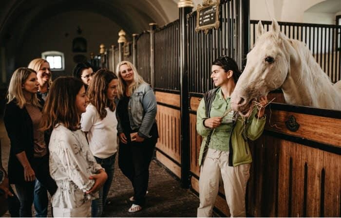 Lipicei ménes: lovarda belépővel, lovasbemütatóval és ebéddel: 50 Eur / fő.