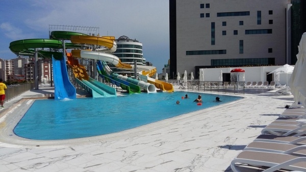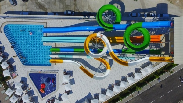 - medence csúszdákkal (a hídon keresztül, az út túloldalán)