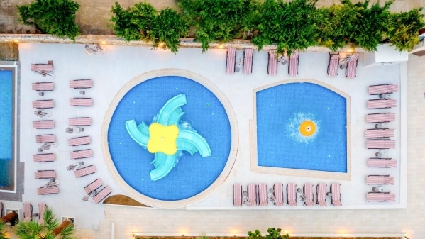 - több medencés rész - relax, family, aktív, animációs (napágyak és napernyők ingyenesen, törölközők kaució ellenében)