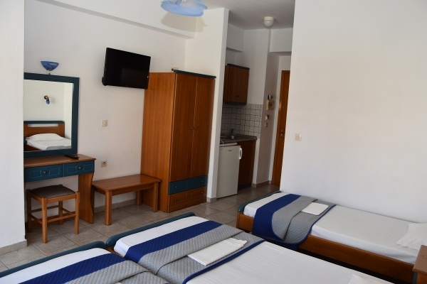- 4-5-ágyas apartmanban, amely 3 légteres, két hálószoba és egy konyhasarokkal felszerelt előtér található. Az apartman felszereltségéhez légkondicionáló (felár a helyszínen fizetendő, 42 EUR/készülék/hét, apartman esetében 2 készüléket kell fizetni), tévé, konyhasarok, amely a legszükségesebb eszközökkel felszerelt, fürdőszoba zuhanyzóval, terasz kerti bútorokkal.